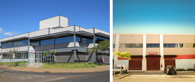 Fachada da Cultura Inglesa e Lojas Americanas Express, presentes no bairro Granja Marileusa.